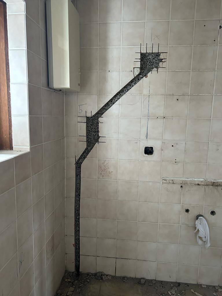 Na uitbraak van de keuken, badkamer en toilet kunnen we beginnen aan de elektriciteit en loodgieters werken.