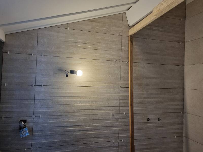 Bij het kappen en schijven merkten we op dat we misschien beter de woning opnieuw volledig uitplakken, gezien het nu een soort van sierpleister is en dit niet ons ding is.